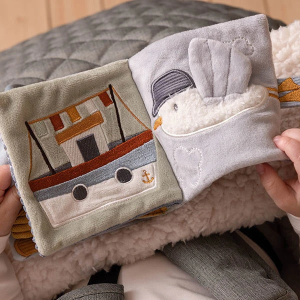Met buggyboekje Sailors Bay beleeft je kindje veel plezier aan het ontdekken van de verschillende materialen en activiteiten in het babyboekje. Het buggyboekje knispert, bevat een knijptoeter en spiegel. Ideaal voor het prikkelen van de zintuigen en de ontwikkeling van de hand-oogcoördinatie. Je bevestigd het eenvoudig aan de buggy.