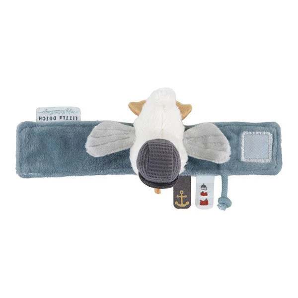 Met deze armbandrammelaar uit de Sailors Bay collectie van Little Dutch stimuleer je jouw baby om te bewegen en te ontdekken. Zo zal je kleintje bij elke beweging genieten van het geluid van de rammelaar. De polsrammelaar is gemaakt uit heerlijk zacht materiaal, comfortabel om te dragen en kan ook om de enkel worden geplaatst als je baby zijn of haar voetjes verkent. Je baby zal genieten van de knisperende vleugeltjes en het kleine koordje aan deze rammelaar, die met de vingertjes te ontdekken zijn.