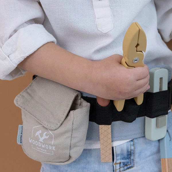 Deze gereedschapsgordel is is super leuk voor kleine klussers! Doe je gordel om, het is tijd om je gereedschap te gebruiken! Er zijn zo veel dingen in huis die moeten worden gemaakt. Met je eigen meetlint, tang, stanleymes, vijl en figuurzaag heb je al het gereedschap dat je nodig hebt voor kleine klusjes bij de hand. Peuters kopiëren maar al te graag hun ouders. Deze verstelbare gereedschapsriem brengt de innerlijke klusser in hen naar buiten. Deze geweldige set met 5 verschillende stukken gereedschap stimuleert rollenspel, maar ook creativiteit en motoriek! Combineer met de werkbank en gereedschapskist om het gereedschapsassortiment uit te breiden en je kleintje een speciale werkruimte te geven.