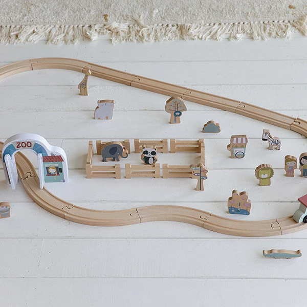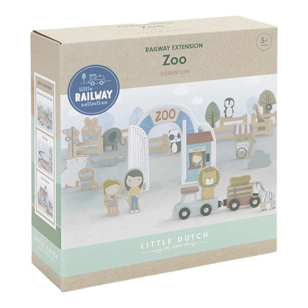 Deze dierentuin is een mooie 28-delige houten speelset, die perfect gekoppeld kan worden aan de treinbaan XXL van Little Dutch. Het is prachtig houten speelgoed dat de fantasie bij kinderen aanspreekt. Maak van de laatste stop met de trein een gezellige dag in de dierentuin! De 28-delige set bestaat onder andere uit een ticketbalie, een onderhoudswagen met trailer, 10 dieren en een ijskraam. Elk dier past in de trailer voor uren speelplezier. De voertuigen passen op de treinbaan, waardoor ze door de dierentuin kunnen rijden. Uitbreiding sets voor de treinbaan zijn beschikbaar. Gemaakt van duurzaam en FSC-gecertificeerd hout. Bij deze set zijn geen rails stukken inbegrepen.