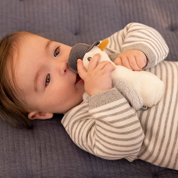Knijpspeeltje Sailors Bay is super leuk babyspeelgoed. Het knijpspeeltje is ontworpen om makkelijk beet te pakken met kleine handjes en het stimuleert de zintuigen wanneer het ingeknepen wordt en het grappige geluid te horen is. Een schaterlach gegarandeerd!
