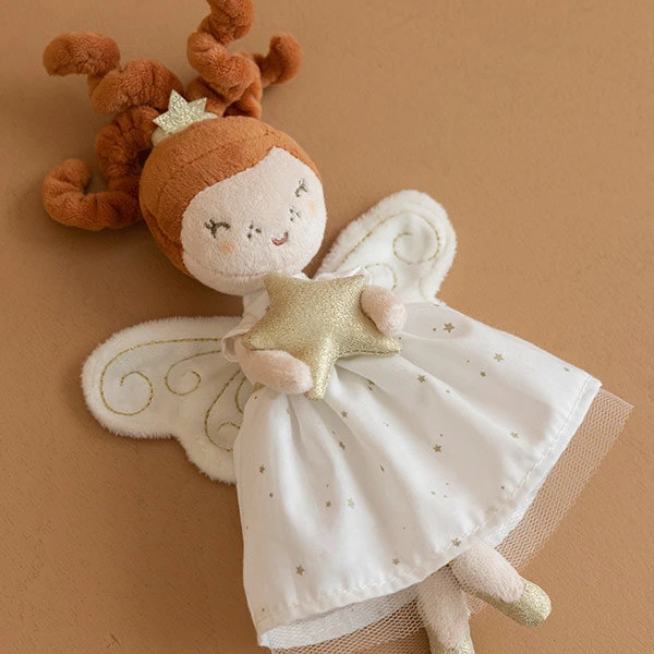 Mia de fee van hoop is een prachtige pop. Deze kleine fee brengt hoop. Hoop om je te helpen je grootste dromen waar te maken. Vanuit een magische wereld hier ver vandaan is feetje Mia naar je toe gekomen om je te betoveren met haar schitterende ster. Ze is je beste vriendin en zal er altijd voor je zijn. Met haar mooie witte jurk, rode gekrulde paardenstaart, vleugels met gouddraad en ballerinaschoenen, zal Mia rond fladderen in kinderdromen en de sterren een stukje dichterbij brengen. Deze lieve zachte fee stimuleert de verbeelding, brengt sprookjes tot leven en voegt magie toe aan de kindertijd.