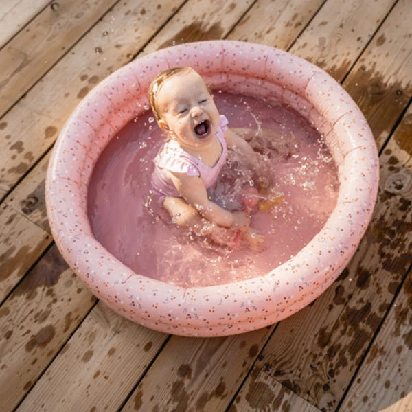 Dit opblaasbaar zwembad in Little Pink Flowers thema van Little Dutch geeft verkoeling aan je kindje op warme dagen. Het zwembad is eenvoudig op te blazen en neer te zetten in je tuin of op het terras. Met een laagje water erin heeft je kindje een hoop speelplezier. Het zwembadje heeft een grootte van 80 cm.