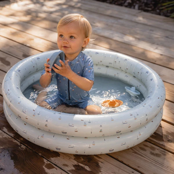 Dit opblaasbaar zwembad in Sailors Bay thema van Little Dutch geeft verkoeling aan je kindje op warme dagen. Het zwembad is eenvoudig op te blazen en neer te zetten in je tuin of op het terras. Met een laagje water erin heeft je kindje een hoop speelplezier. Het zwembadje heeft een grootte van 80 cm.