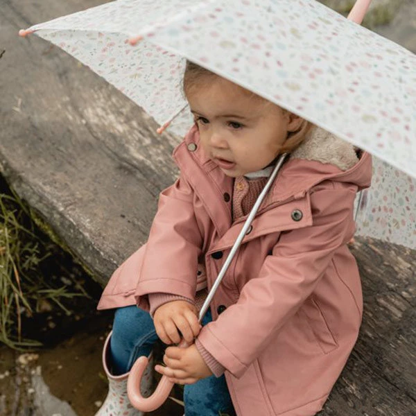 Onder deze paraplu in prachtig Flowers & Butterflies design van Little Dutch blijf je veilig en droog. Met deze vrolijke paraplu wil je kleintje maar al te graag naar buiten op een regenachtige dag. Deze lichtgewicht paraplu is waterdicht, sluit met klittenband, is 57 cm hoog, heeft een doorsnede van 66 cm,, en een J-vormig handvat .