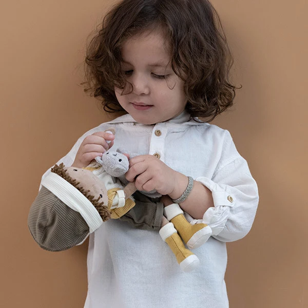 Deze pluche knuffelpop Jake met zijn stoere muts en gele regenlaarzen kan niet wachten om geknuffeld te worden. Jake wordt je nieuwe beste vriend. Hij zal er altijd zijn als je wilt spelen of een dikke knuffel nodig hebt. Samen met zijn grijze kat zoekt hij graag naar kleine schatten. Of het nu in huis is of op het strand, hij weet altijd iets bijzonders te vinden. Wat zal de eerste schat zijn die jullie samen zullen vinden? Jake is zacht en knuffelig, 35 cm lang en is verpakt in een mooie opbergdoos.