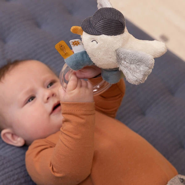 Deze schattige ringrammelaar meeuw uit de Little Dutch Sailors Bay collectie wordt het favoriete speelgoed van je baby. Het rinkelende geluid van de knuffelbare vogel stimuleert de hand-oogcoördinatie en prikkelt de nieuwsgierigheid van baby’s.